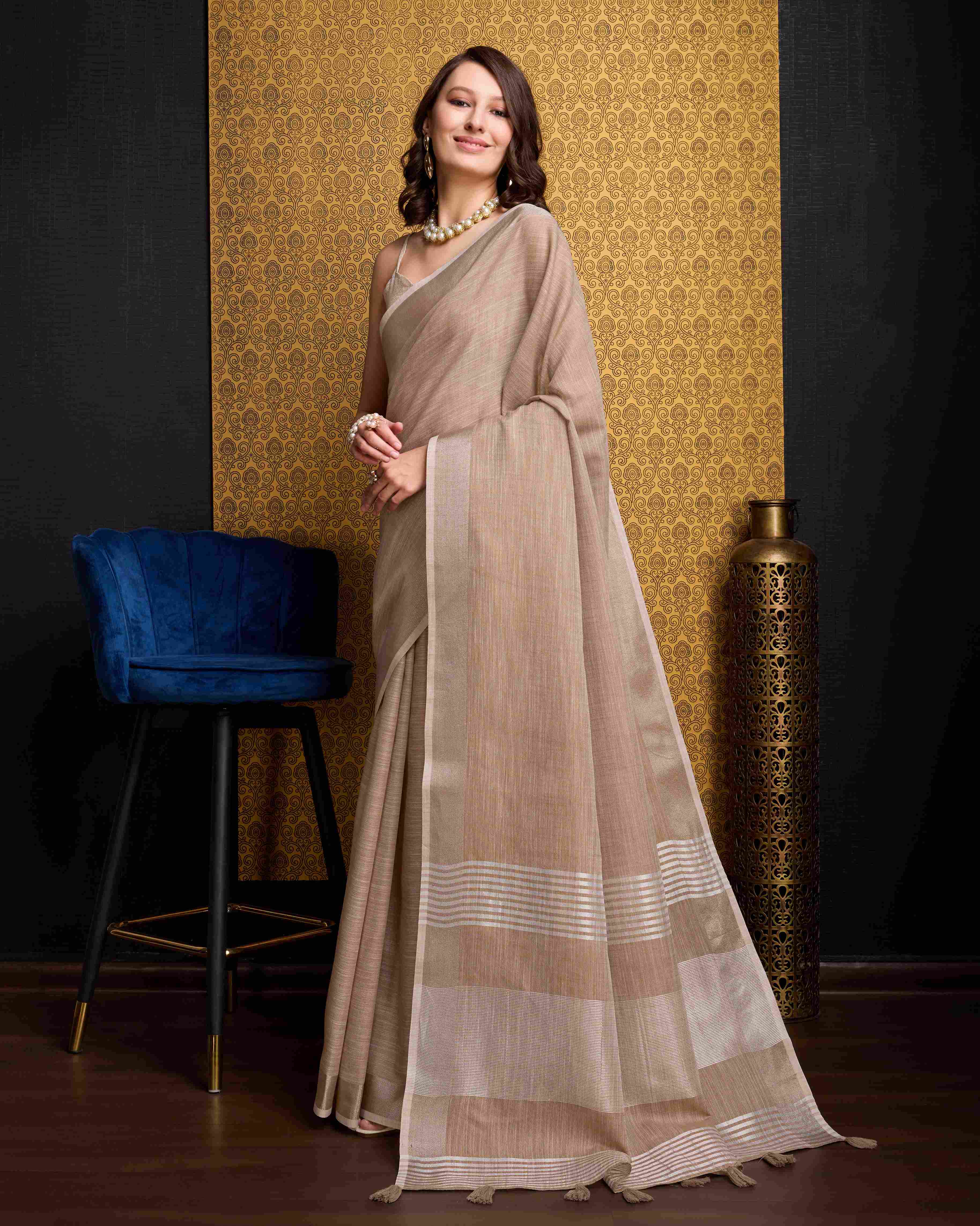Chiku Cotton Linen Saree With Pure Cotton Unstitched Blouse Piece